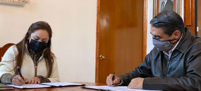 CAMPUS EN VILLA DE REYES.- En el evento donde se firmó un convenio marco, entre la UASLP y el Ayuntamiento de villa de Reyes, a través del cual impulsarán acciones para el desarrollo económico y la mejora de la calidad de vida de las y los ciudadanos de ese municipio. En el acto presidido por El rector de Universidad, Alejandro Zermeño y la alcaldesa Erika Briones, se planteó comenzar con el estudio de factibilidad para iniciar con un campus con nivel preparatoria, y tal vez más adelante desarrollar áreas académicas con niveles de técnicos superior así como licenciatura relacionadas con la ingeniería o idiomas.
