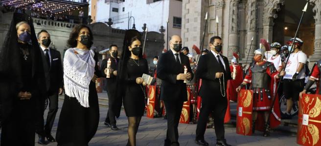 CAMINÓ.- El Viernes Santo también se vio a Enrique y Estela desfilar en la Procesión del Silencio. Ella lució un hermoso rebozo en blanco y él una vela en sus manos. Ambos con respeto y seriedad como parte de un evento que tiene mucho de fe y religiosidad para los católicos.