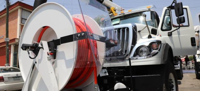 PARA DESTAPAR CAÑERÍAS.- Para desazolvar 4 kilómetros de drenaje de la capital, Enrique Galindo Ceballos, como presidente de la Junta de Gobierno de Interapas, puso en marcha dos camiones de succión – presión, que tuvieron un costo total de 25 millones de pesos, con el objetivo de mejorar las condiciones de infraestructura sanitaria de la Zona Metropolitana de San Luis Potosí.
