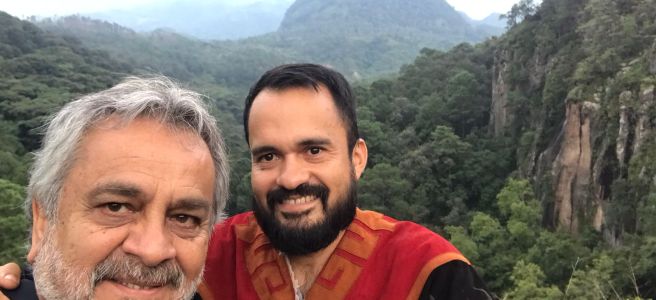 Ya instalados en la cabaña, destino final de nuestro breve periplo, hicimos con Hugo, Jimmy, Vicente, Abel y el uruapense una caminata por el bosque cercano, escuchábamos los lejanos cantos de jilgueros, y del pájaro clarín. Si se detiene uno y pone atención, puede escuchar lo que Octavio Paz llamó: “rumor de alas y de crótalos” … y también, “los tambores lejanos del chubasco”, pues ya entrada la tarde, el cielo su cubrió de nubes y retumbó por instantes anunciando lluvia. Mientras le entrábamos con gusto a la deliciosa carne asada y demás viandas deliciosas, todo aderezado por mezcal de Piedras de Lumbre…