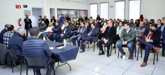 En la reunión, el Presidente Municipal informó de la regeneración integral que realiza el Ayuntamiento en el Centro Histórico de la Capital, con trabajos para regularizar el comercio establecido y también el de la vía pública; además de reforzar la seguridad y vigilancia; así como realizar labores de inspección con trabajos coordinados de diversas áreas municipales, lo que repercute en lograr que el primer cuadro de la ciudad tenga una mejor imagen y sea más atractivo para visitantes y compradores.
