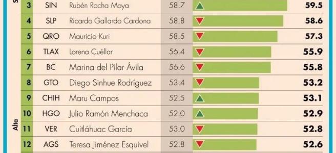 De acuerdo con el Ranking Mitofsky, medición mensual realizada para El Economista, el Mandatario potosino, se ubica dentro de las y los gobernadores con aprobación Alta, por arriba de Querétaro, Tlaxcala, Baja California, Guanajuato, Chihuahua e Hidalgo, además de resaltar su posición en segundo lugar nacional de las y los afines a Morena, luego de Sinaloa.