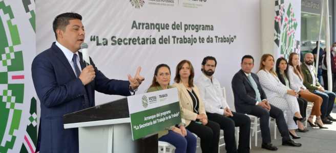 El Gobernador del Estado encabezó el inicio del programa “La Secretaría del Trabajo te da Trabajo”, como un modelo a nivel nacional, en el que las y los potosinos podrán acercarse a las más de 500 empresas, comercios, talleres o centros de trabajo que ofertan oportunidades laborales, con lo que se busca brindar la oportunidad de un empleo a las 30 mil personas buscadoras, para que tengan acceso a él sin tantas complicaciones.