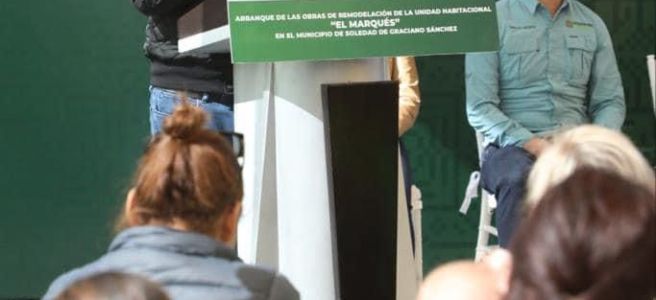 La rehabilitación de la unidad habitacional El Marqués, con una inversión de nueve millones de pesos, incluye la remodelación de los condominios, arreglo de calles, renovación de áreas verdes, entre otras acciones. Gallardo Cardona anunció que al concluir en esta área se realizarán los mismos trabajos en las colonias Azaleas, El Polvorín y Hogares Ferrocarriles, entre otras.