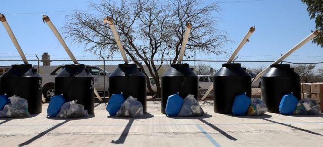 Posteriormente, se trasladó a la escuela municipal Emiliano Zapata, en la comunidad de Lechuguillas, donde hizo entrega de apoyos alimentarios y de nueve cisternas de gran capacidad para almacenar y distribuir agua potable, con lo que se da solución a una de las principales demandas de la población.