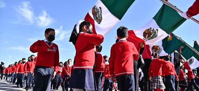 En su discurso, el funcionario estatal, afirmó que para honrar al lábaro patrio y su grandeza, dijo, que es necesario ser parte de la construcción de un México fuerte y democrático, como lo ha definido el Gobierno del cambio, por lo que a las niñas y los niños corresponde prepararse para los retos del futuro; respetar a sus madres, padres, maestras, maestros y compañeros.