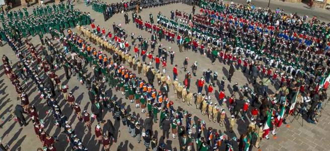 Este viernes 24 de febrero “Día de la Bandera” en emotiva ceremonia de Juramento a la Bandera de alumnas y alumnos de tercer año de primaria de escuelas pertenecientes a la SEGE, encabezado por el Mandatario Estatal se realizó el abanderamiento a escuelas de la capital del Estado, donde enfatizó la importancia de “hacer una pausa en la vida diaria para que, en estas fechas cívicas se retome el patriotismo mexicano”.