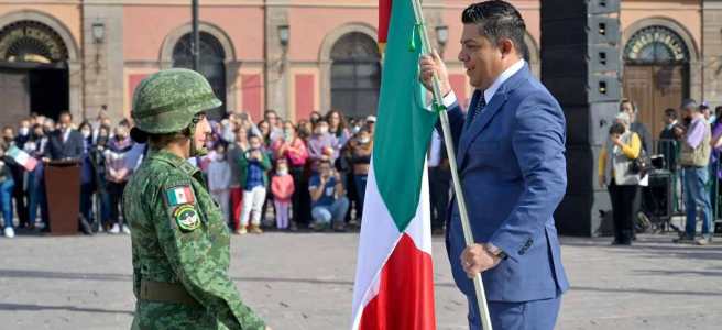 “No hay duda que todas y todos coincidimos en que la Bandera de México es el emblema de toda nuestra historia, desde las primeras migraciones indígenas que llevaron a la fundación de Tenochtitlán, hasta la Cuarta Transformación de la que hoy somos participantes y protagonistas”, expresó el Jefe del Ejecutivo Estatal.