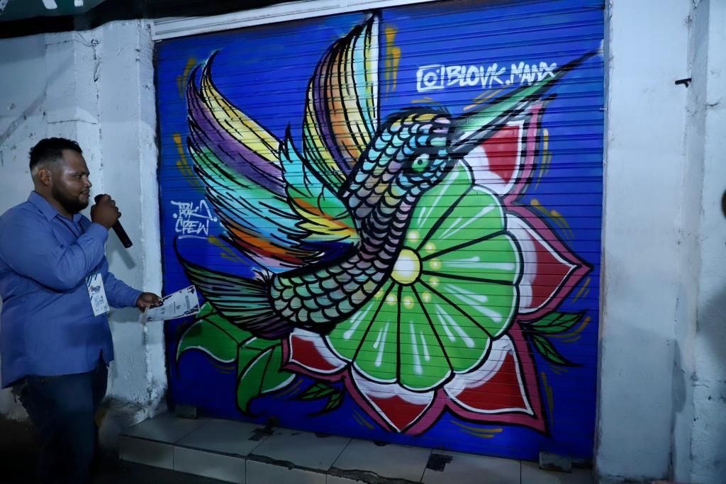 El Centro Histórico de la Capital del Sí se convirtió en una gran galería de arte, inaugurada este jueves por el Alcalde Enrique Galindo, como resultado del programa “Color Hidalgo”, que permitió transformar las cortinas de los comercios, antes graffiteadas, en murales con expresiones artísticas de alta calidad plasmadas por 41 creadores locales, que han permitido incrementar el acervo pictórico de toda la Capital a alrededor de 200 murales en 10 meses.
