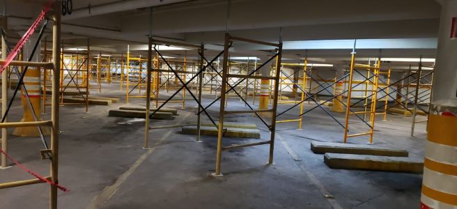 Para seguridad de los miles de asistentes a los distintos eventos que se realizarán en la Plaza de Los Fundadores con motivo del II Festival Internacional San Luis en Primavera, el H. Ayuntamiento de San Luis Potosí procedió a la instalación de apuntalamientos en puntos específicos del estacionamiento que se encuentra debajo de la plancha de la plaza.