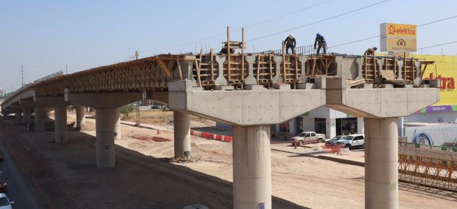 La funcionaria anunció que en próximos días se retirará el puente peatonal antiguo que cruzaba por Circuito Potosí y que será reubicado para acelerar la instalación de trabes que darán forma a la rampa en el tramo sur. A estas maniobras, se deberá considerar el recorrido de líneas de electricidad, postes y cableado existente en la zona.
