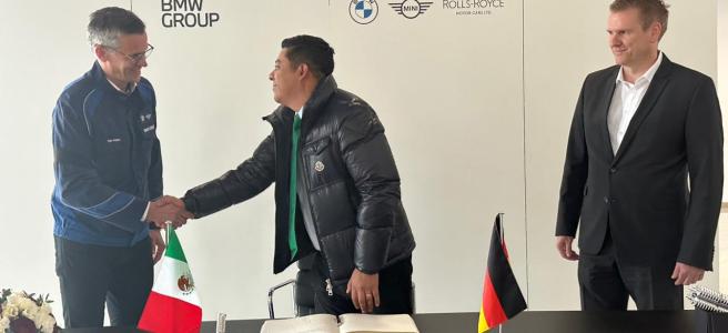 Tras la firma de convenio con directivos de BMW Group, que formaliza la inversión para San Luis Potosí superior a los mil millones de euros, el Gobernador del Estado, Ricardo Gallardo Cardona, agradeció la hospitalidad y la confianza de la compañía para llevar a territorio potosino la producción de autos eléctricos y baterías, que abren oportunidades para un futuro mejor.