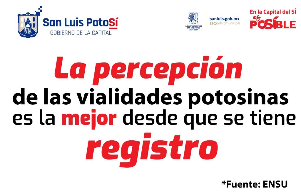 La ciudad de San Luis Potosí está considerada como la capital más eficaz del país debido al trabajo del actual Gobierno Municipal, según la Encuesta Nacional de Seguridad Urbana del Inegi, en el que los potosinos perciben el mejor momento de las vialidades potosinas desde que se tiene registro.