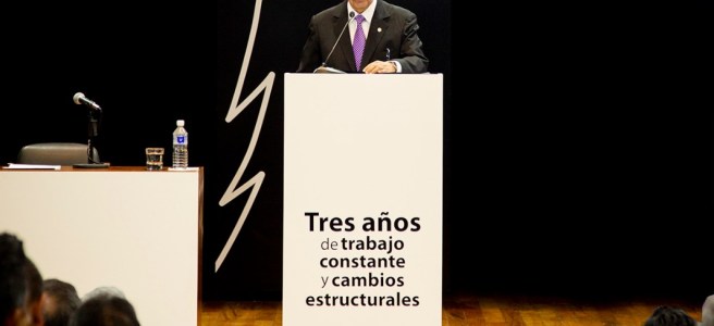 Así lo afirmó el rector de la UASLP, Alejandro Javier Zermeño Guerra, al rendir su Tercer Informe anual de actividades correspondientes al periodo de enero a diciembre, anterior el H. Consejo Directivo Universitario (CDU), la Junta Suprema de Gobierno, invitados especiales, comunidad universitaria y público en general, que asistió al evento realizado en el Auditorio Rafael Nieto.