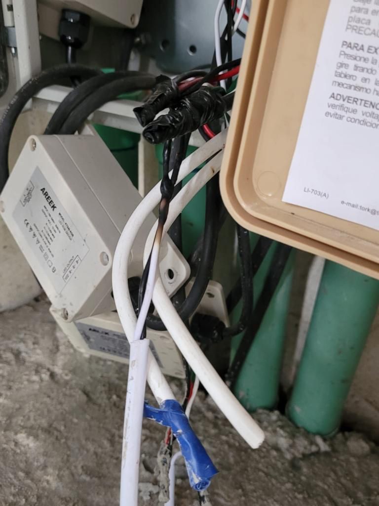 En otras imágenes que vecinos del barrio de Tlaxcala hicieron llegar a la dependencia luego de detectar fallas en la iluminación escénica inaugurada apenas el martes 2 de mayo, se observan daños a los conductos de energía eléctrica.