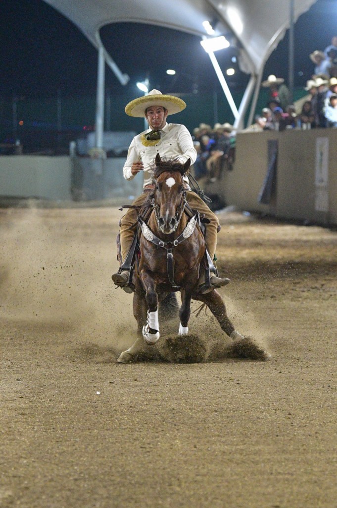 Además de ser en varias ocasiones el mejor Charro completo a nivel nacional, ayer deleitó al respetable este Charro 33 con sus tres manganas a pie y las mismas a caballo, el público se le entregó y reconoció su capacidad. En los pasos de la muerte Quintana Roo no tuvo suerte, mientras que RG2 lo hizo de mero trámite y los del Pitayo cumplieron pero no les alcanzó. Al final el premio en disputa de 300 mil pesos fue para Charros RG2 con 474 puntos, Rancho El Pitayo sumó 381 unidades y Tres Regalos de Quintana Roo finalizó con 376.