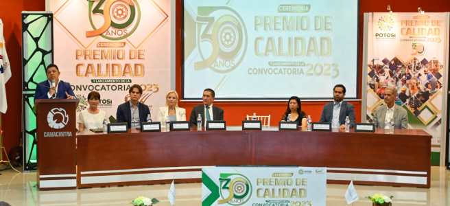 Con la participación de integrantes del sector empresarial y compañías e instituciones galardonadas, el Gobernador Ricardo Gallardo Cardona, asistió a la entrega de la Edición 2022 y lanzamiento de la convocatoria 2023 del Premio de Calidad San Luis Potosí, de la Cámara Nacional de la Industria de la Transformación (Canacintra), donde reafirmó el compromiso de mejora permanente y el liderazgo para mantener el crecimiento responsable y sustentable del Estado.