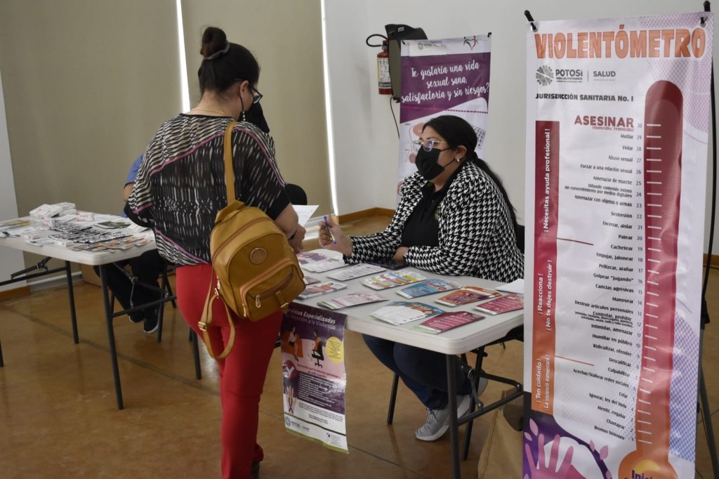 El Centro de Justicia para las Mujeres (CJM) de San Luis Potosí, organiza jornadas de atención a mujeres, para acercar vacunas, toma de muestras, información nutricional, asesoría sobre la violencia de género, entre otros servicios, gracias al convenio que firmó con los Servicios de Salud del Estado,