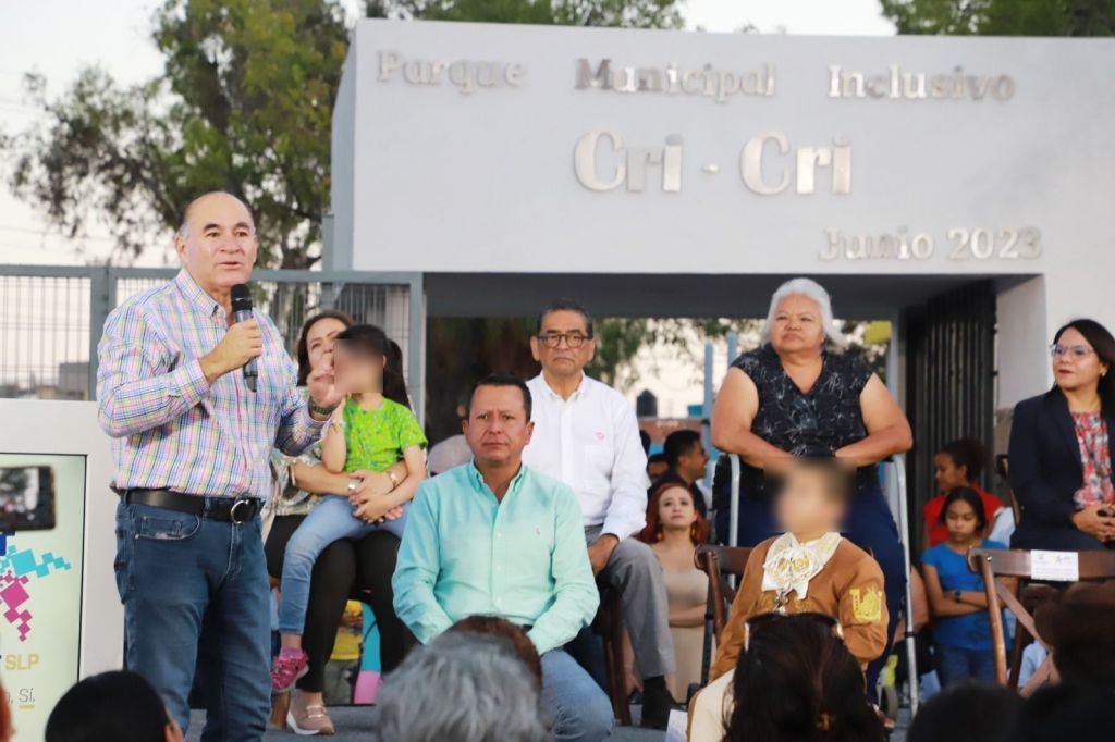 El Alcalde Enrique Galindo Ceballos y la Presidenta del Sistema Municipal DIF de la Capital, Estela Arriaga Márquez, inauguraron el Parque Inclusivo Cri-Cri, en la colonia Industrial Aviación, un espacio municipal que estuvo en el abandono por años, pero que ahora cuenta con un nuevo rostro, mucho más moderno y para el disfrute de todas y todos los potosinos.