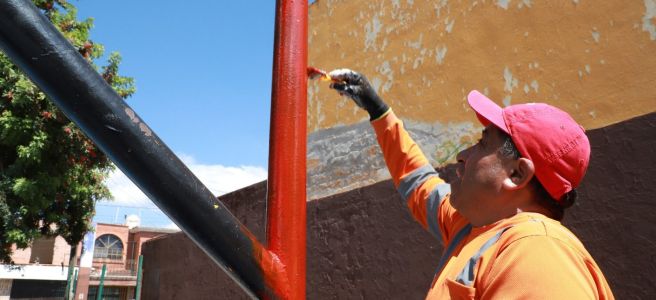 En el Domingo de Pilas en la colonia Los Reyitos, trabajadores municipales, junto con vecinos de la zona, realizaron trabajos de retiro de basura, retiro de desecho, barrido manual, deshierbe, faldeado de árboles, pintura en ejercitadores, pintura en juegos infantiles, pintura en barda y diagnóstico de luminarias en un área verde y deportiva del sector.