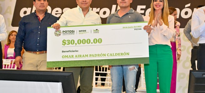 También entregó cheques simbólicos a 15 personas de los programas Becacrédito, CrediTodas, CrediTaxi, Regionable, PotosínFrontera, Fondo San Luis, Dicapacitados, Impulso a la Economía Familiar, Crédito a la Palabra, Mi Gran Tesoro, Impulso Nafin y LiberarT, entre otros.
