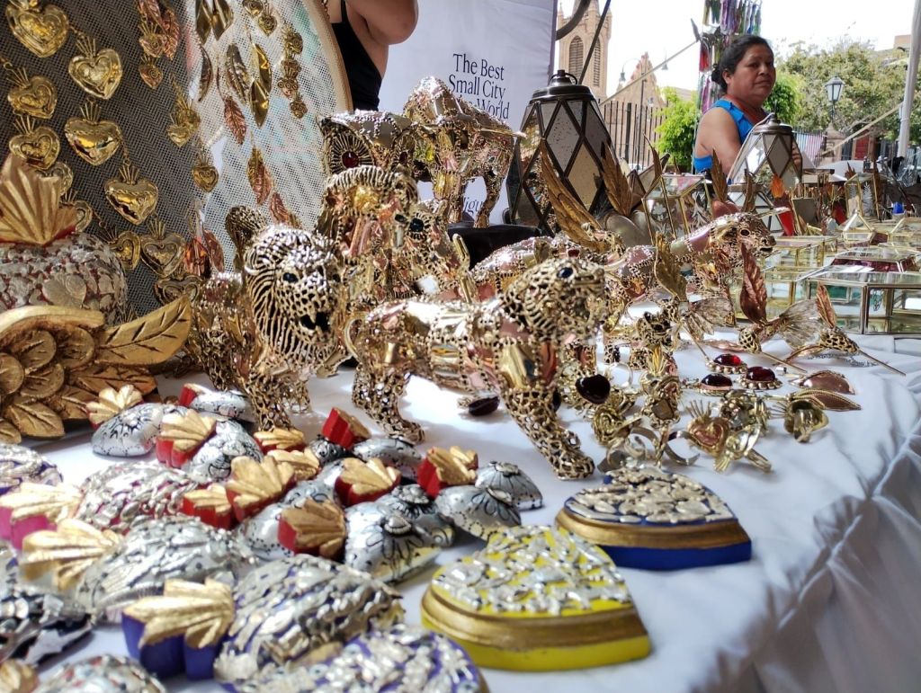 Cientos de potosinos, potosinas y visitantes nacionales e internacionales apreciaron y comenzaron a comprar textiles, comida, arte en madera, latón y cuero, cerámica, barro y otros materiales que le dieron colorido a la muestra artesanal como parte del “Festival de Ciudades Mexicanas del Patrimonio Mundial” que se celebra en el Centro Histórico de la capital del estado.