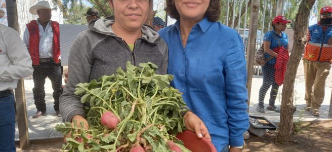 «Son 19 Huertos comunitarios los que se mantienen en funcionamiento, y los beneficios para las familias son notables pues se recolectan alrededor de 15 kilos por cosecha, de ahí que seguimos en el camino de tener familias sostenibles», destacó la titular de la institución, Estela Arriaga.