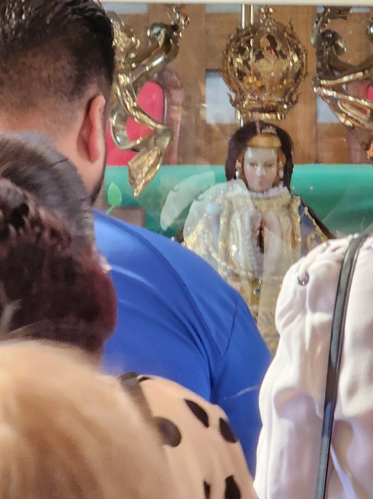 Ya dentro del templo la gente se arremolinó frente a la imagen, hasta que alguien puso orden pidiendo dos filas al centro del recinto para poder verla y salir por los costados, los fieles obedientes se formaron y uno a uno pasaron frente a la venerada.