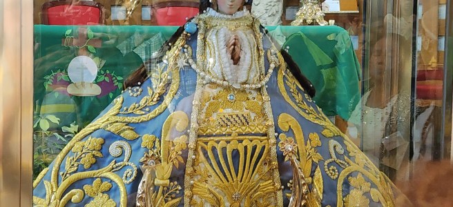 Ya volverá, aunque siempre esta presente, siempre con nosotros, dijo una señora con una pequeña tomada de la mano que llevaba una figura de esas de yeso en la mano, claro con la imagen de la Virgen Viajera, la de San Juan de los Lagos.