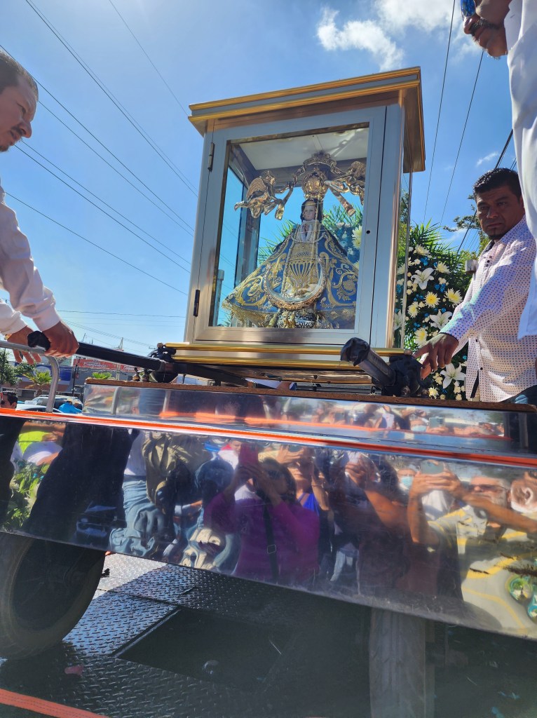 Llegó y aunque el camión donde era transportada se estacionó por la calle de Himalaya las Virgen ingresó por la puerta principal, como debe de ser por su investidura. Es una Reina