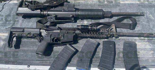 Dentro de la unidad, que se encontraba con las puertas abiertas, se localizaron dos armas largas con cuatro cargadores y 52 municiones calibre .223, que fueron aseguradas y puestas a disposición de la Fiscalía General de la República (FGR).