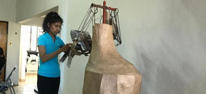 En el taller del Centro Cultural La Merced, promotoras y promotores culturales de colonias y barrios trabajan en cerca de 30 calaveras monumentales, que serán exhibidas en la celebración del Día de Muertos en la Calzada de Guadalupe.