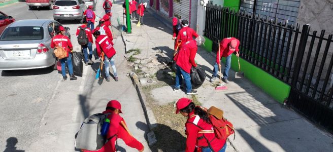Reconoció públicamente a las y los trabajadores municipales que desde temprana hora empiezan a hacer trabajos de limpieza con barrido manual y retiro de maleza; poda y tala de árboles, reforestación y colocación de pintura.