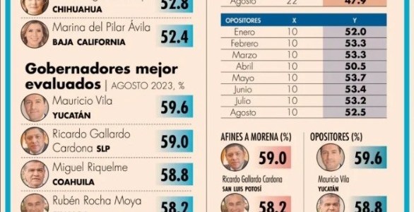 El Gobernador de San Luis Potosí Ricardo Gallardo Cardona, logró la segunda posición a nivel nacional con mayor aval ciudadano, para el mes de agosto, de acuerdo con el medio de comunicación el Economista, con una aprobación de 59 por ciento.