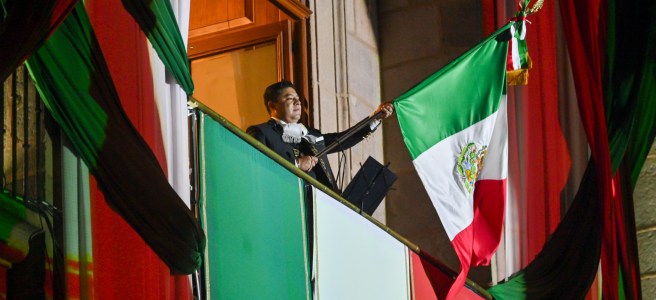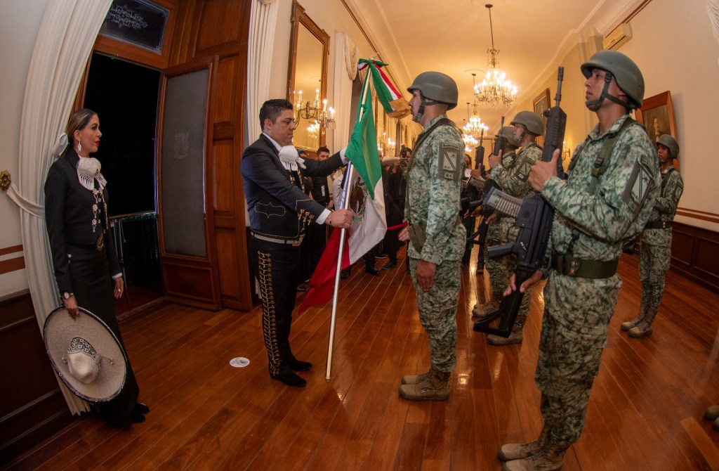 A las 23:00 horas, el Mandatario Estatal, salió al balcón principal de Palacio de Gobierno, acompañado por su esposa, la presidenta honoraria del Sistema Estatal para el Desarrollo Integral de la Familia (DIF), Ruth González Silva, de sus hijos, así como de miembros del gabinete estatal e invitados especiales, para la tradicional ceremonia del Grito de Independencia.