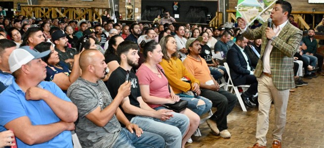 Ante cerca de 3 mil paisanos potosinos, el Mandatario Estatal, destacó el esfuerzo que está haciendo el Gobierno 9 para ofrecer, a través de la Secretaría del Trabajo y Previsión Social (STPS), siete mil empleos en San Luis Potosí, a fin de que quienes buscan trabajo para sostener a sus familias, lo encuentren de forma sencilla y rápida, con lo que se evita la migración.