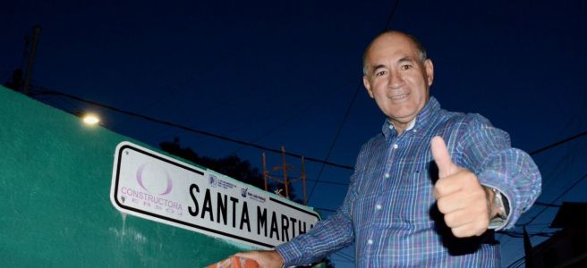 Este miércoles, en la colonia San Ángel, el Alcalde Enrique Galindo Ceballos dio inicio a la renovación de placas de nomenclatura de calles y avenidas de la ciudad, en un esfuerzo conjunto entre empresas instaladas en la ciudad y el Gobierno de la Capital: “La sociedad hace una parte, la iniciativa privada pone otra cosa y hemos avanzado enormemente en los programas municipales porque logramos integrar a la sociedad civil organizada. Lo vamos a seguir haciendo así, porque nos ha funcionado muy bien”.