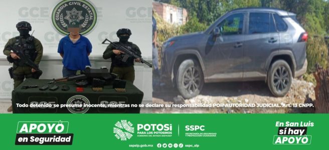 Luego de atender un reporte sobre un vehículo que se desplazaba en calles del centro del municipio, elementos de la Guardia Civil Estatal implementaron un operativo en la zona. Al llegar a la calle de Doctor Ignacio Gama Salcedo, ubicaron a una persona con un chaleco táctico, quien portaba un arma de fuego tipo fusil y que aparentaba custodiar la entrada a un inmueble.