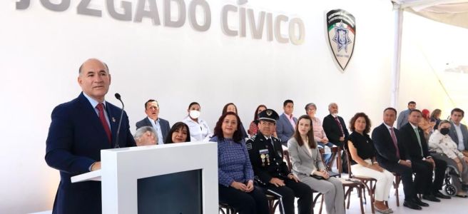 “Al adoptar y poner en marcha en San Luis Capital el Modelo Nacional de Justicia Cívica, cambiamos el paradigma de cómo se hace la seguridad pública en el Municipio, y damos el primer paso, por eso, es uno de los momentos más importantes del Gobierno en estos dos años,” declaró el Presidente Municipal Enrique Galindo Ceballos, durante la inauguración del Juzgado Cívico, ubicado en Paseo de los Horizontes, en la Antigua Comandancia Poniente.