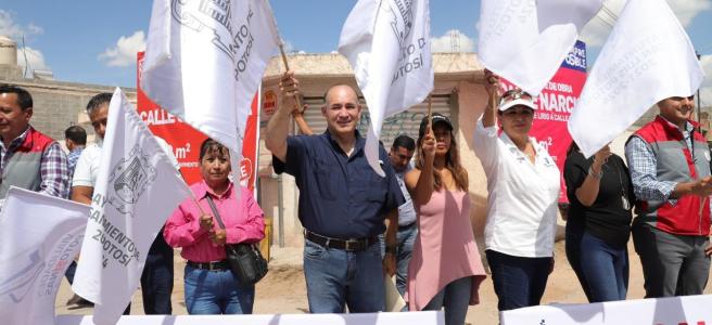 El Alcalde de San Luis Capital, Enrique Galindo Ceballos, junto con vecinas y vecinos, dio el banderazo de arranque de las nuevas obras que abarcarán más de 11 mil metros cuadrados de rehabilitación de las calles Narciso, en su segunda etapa, y la calle Orquídea, de las colonias Las Flores y Las Trancas, respectivamente.