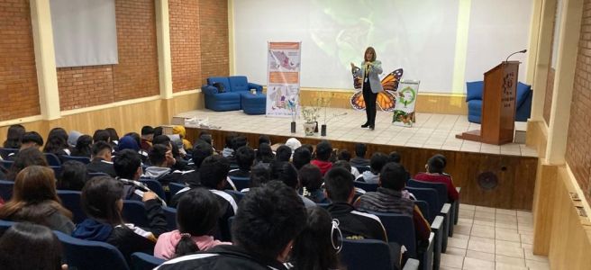 Aparte, el Centro de Estudios Tecnológicos Industrial y de Servicios – CETis 125-, pidió la plática relacionada con la Mariposa Monarca, su migración, su paso por el territorio potosino, así como para difundir la importancia de los polinizadores, la cual estuvo dirigida a más de 100 jóvenes de 1º de preparatoria.