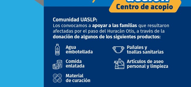 Tras los estragos causados por el reciente paso del huracán Otis por el estado de Guerrero, la comunidad universitaria da un ejemplo de solidaridad al convocar a la acción y al apoyo a los afectados por este desastre natural; pues la Universidad Autónoma de San Luis Potosí (UASLP) lanzó una campaña de recolección de productos para ayudar a las familias afectadas.