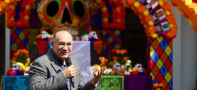 En una atmósfera de tradiciones populares, trabajadoras y trabajadores municipales, así como visitantes, fieles a las costumbres del 2 de noviembre, Día de Muertos, acompañaron la ceremonia de develación del Altar de Muertos que encabezó el Alcalde Enrique Galindo Ceballos en la Unidad Administrativa Municipal: “Traemos en el corazón preservar todas las tradiciones y esta es una de ellas. Como Gobierno Municipal vamos a seguir construyendo estas costumbres”, manifestó el mandatario municipal.