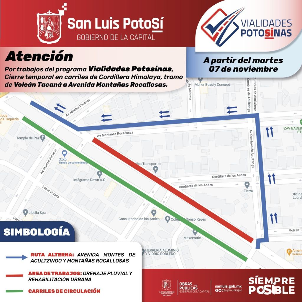 A partir de este día la Av. Himalaya sufrirá algunos cierres por obras que realiza el municipio, los trabajos serán en el tramo de Volcán Tacaná a Avenida Montañas Rocallosas.