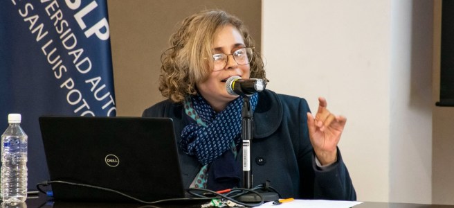 Como parte de las actividades realizadas durante el 4º. Encuentro de Mediadores de Lectura “Hacia una cultura de paz desde las Ciencias de la Información”, organizado por la Facultad de Ciencias de la Información (FCI) de la UASLP, la doctora Adriana Mata Puente, catedrática e investigadora de la entidad, presentó la ponencia “Lectura y Paz: ¿cómo contribuye una con la otra?”.