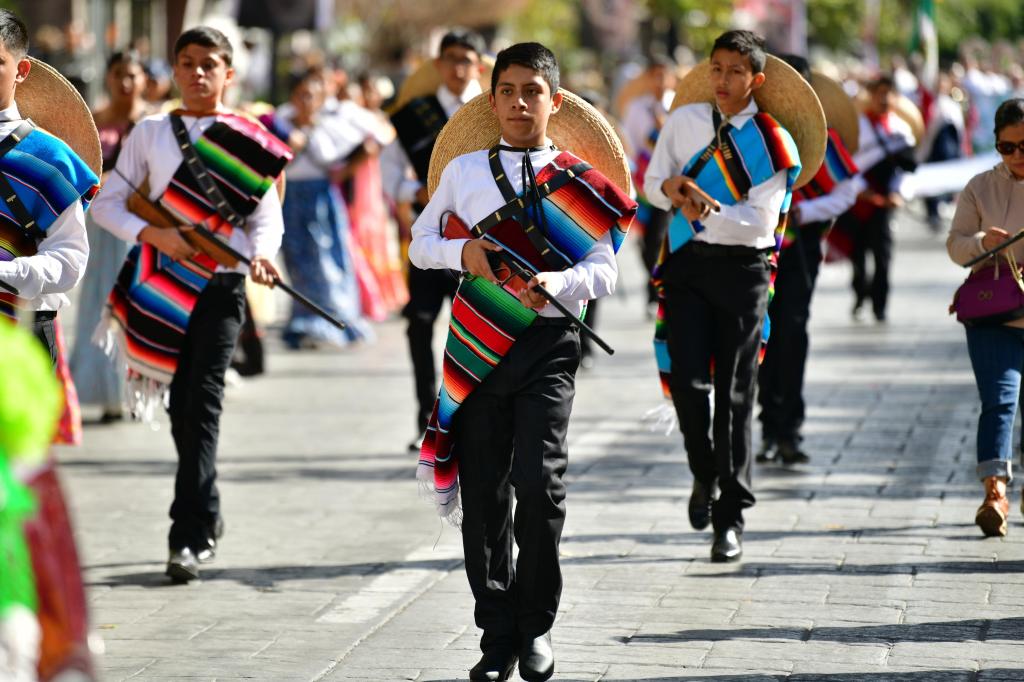 Las calles del Centro Histórico se pintaron de los colores patrióticos y se vivió un ambiente festivo entre participantes y asistentes al Desfile Conmemorativo al 113 aniversario de la Revolución Mexicana.