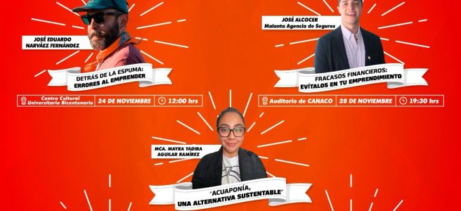 Estas conferencias iniciarán este viernes 24 de noviembre, con la charla Detrás de la Espuma, Errores al Emprender, que se llevará a cabo en la Universidad Marista y concluirán el 30 de noviembre en la Universidad Tangamanga, con la conferencia Claves para tu Constitución Empresarial a cargo de Nahime Esquerra.