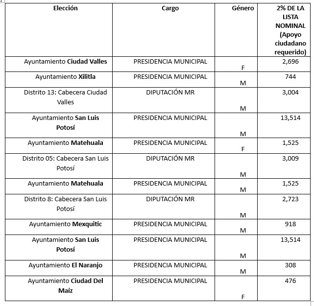 El Consejo Estatal Electoral y de Participación Ciudadana de San Luis Potosí CEEPAC, informó que el pasado 30 de noviembre concluyó el plazo de registro para las personas que aspiran a registrarse en una candidatura independiente para participar en el Proceso Electoral Local 2024.