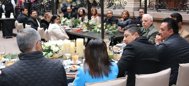 Al ratificar el interés único de continuar con la transformación del Estado para beneficio de las familias potosinas, en un desayuno con Magistradas, Magistrados y consejeros del Poder Judicial del Estado, el Gobernador de San Luis Potosí, Ricardo Gallardo Cardona, expresó su confianza en que el 2024 será de gran trabajo coordinado entre poderes para mantener el despegue del desarrollo económico y social de la Entidad.