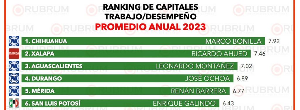 En el cierre del año 2023, el Alcalde de San Luis Potosí, Enrique Galindo Ceballos, destaca entre los alcaldes mejor evaluados a nivel nacional, al ubicarse en el sexto lugar en el ranking elaborado por la empresa encuestadora Rubrum, que evalúa el desempeño de los líderes municipales en 31 capitales de México.
